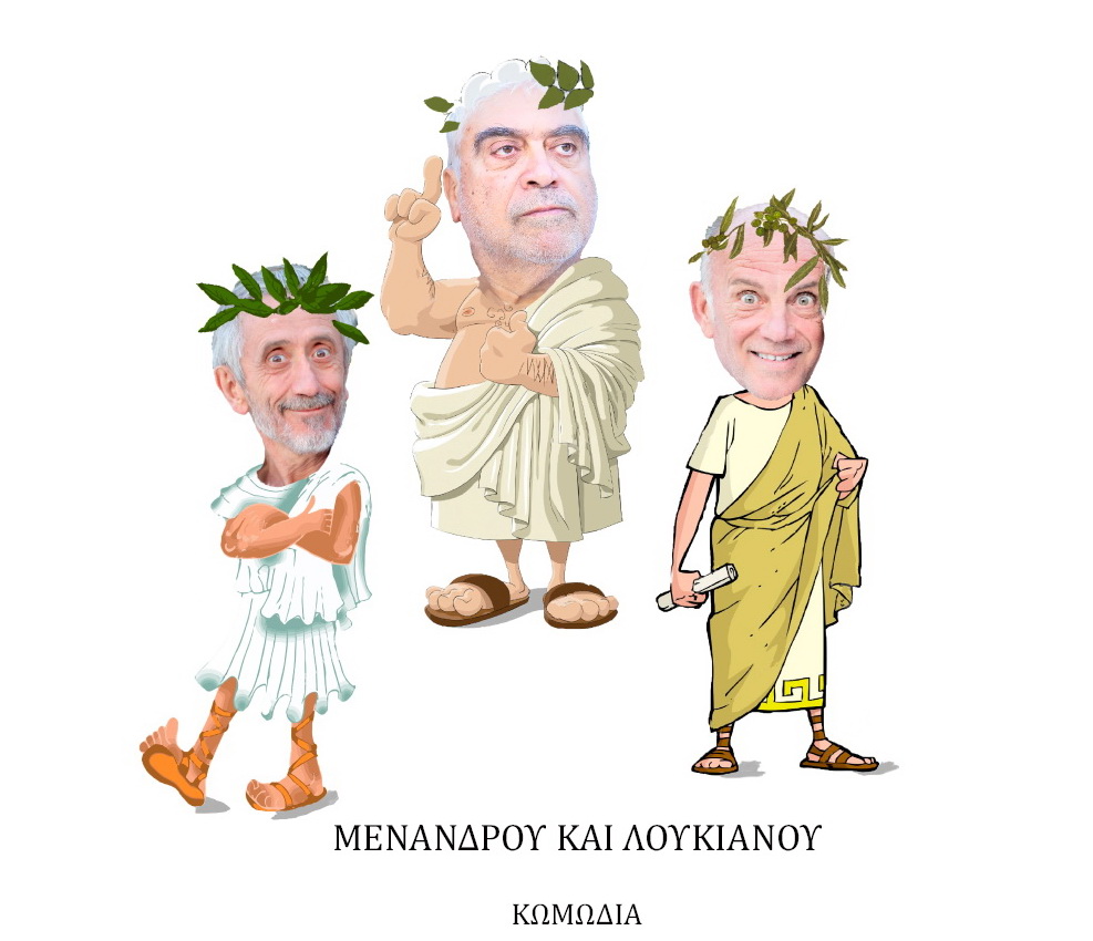 Η «Ασπίς» του Μένανδρου είναι ένα έργο το οποίο δεν έχει παιχτεί ποτέ. Πρόκειται για κωμωδία και εξελίσσεται την εποχή του Μ. Αλεξάνδρου. Η σπασμένη Ασπίδα του Κλεόστρατου, μαρτυρά τον απρόσμενο χαμό του στην μάχη. Ο γέρος Σμικρίνης θέλει να παντρευτεί την νεαρή αδερφή του Κλεόστρατου για να πάρει την κληρονομιά που της ανήκει μετά το θάνατο του αδερφού της. Ο αγαθός υπηρέτης Δάος θα σκηνοθετήσει το θάνατο του Χαιρέστρατου, αδερφού του γέρο Σμικρίνη, ώστε να ξεσκεπάσει το σχέδιο του. Αποκαλύπτεται ότι ο Κλεόστρατος δεν είναι τελικά νεκρός, το σχέδιο του Σμικρίνη ανατρέπεται, η κόρη θα παντρευτεί τον αγαπημένο της και ο Κλεόστρατος την κόρη του Χαιρέστρατου. Το «Συμπόσιο» (Λάπιθαι) του Λουκιανού εξελίσσεται σε ένα γαμήλιο συμπόσιο που είναι καλεσμένοι εκπρόσωποι των φιλοσοφικών σχολών της εποχής, ένας επικούρειος, ένας στωικός, ένας πλατωνιστής και ένας περιπατητικός. Έπειτα από λίγο έρχεται απρόσκλητος ο κυνικός, ο οποίος αρχίζει να συμπεριφέρεται άπρεπα στον οικοδεσπότη και τους συνδαιτυμόνες, προκαλώντας ακόμη και σε αγώνα πυγμαχίας τον γελωτοποιό του συμποσίου. Πολλά ευτράπελα θα συμβούν στο συμπόσιο μέχρι που οι φιλόσοφοι ξεχνώντας την ιδιότητα τους θα πιαστούν στα χέρια. Το έργο αποτελεί την οξύτερη διακωμώδηση για τη συμπεριφορά των φιλοσόφων που μοιάζει να είναι μακριά από αυτό του αντιπροσωπεύουν. Η Ασπίς του Μένανδρου τελειώνει με δύο γάμους και γίνεται έτσι μια ιδανική σύνδεση με το έργο του Λουκιανού που ακολουθεί και διαδραματίζεται σε ένα γαμήλιο συμπόσιο. Η παράσταση θα έχει διερμηνεία στη νοηματική γλώσσα και υποστηρίζει και ακουστική περιγραφή για τυφλούς. Διερμηνεία νοηματικής: Στράτος Πατρινός, Γιάννης Γιαλλούρος Συντελεστές Σκηνοθεσία: Γιώργος Παπαθεοδώρου, Χριστόφορος Χριστοφής Μετάφραση - απόδοση στη νέα Ελληνική: Χριστόφορος Χριστοφής, Παναγιώτης Δημητρόπουλος Μουσική: Νίκος Πλατύραχος Κίνηση - χορός: Έρση Πίττα Σκηνικά - Κοστούμια: Art Stage Παίζουν Δημήτρης Πιατάς, Τάσος Παλαντζίδης, Γιάννης Σιαμσιάρης και 14 ακόμη ηθοποιοί Παραγωγή: Ανθός – Πειραϊκό Θέατρο «Δημήτρης Ροντήρης»
