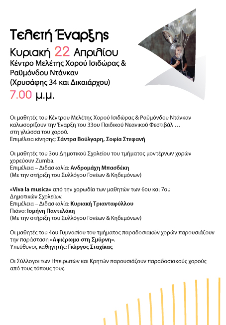 Έναρξη του 33ου Παιδικού Νεανικού Φεστιβάλ …στη γλώσσα του χορού, Κέντρο Μελέτης Χορού Ισιδώρας & Ραϋμόνδου Ντάνκαν
