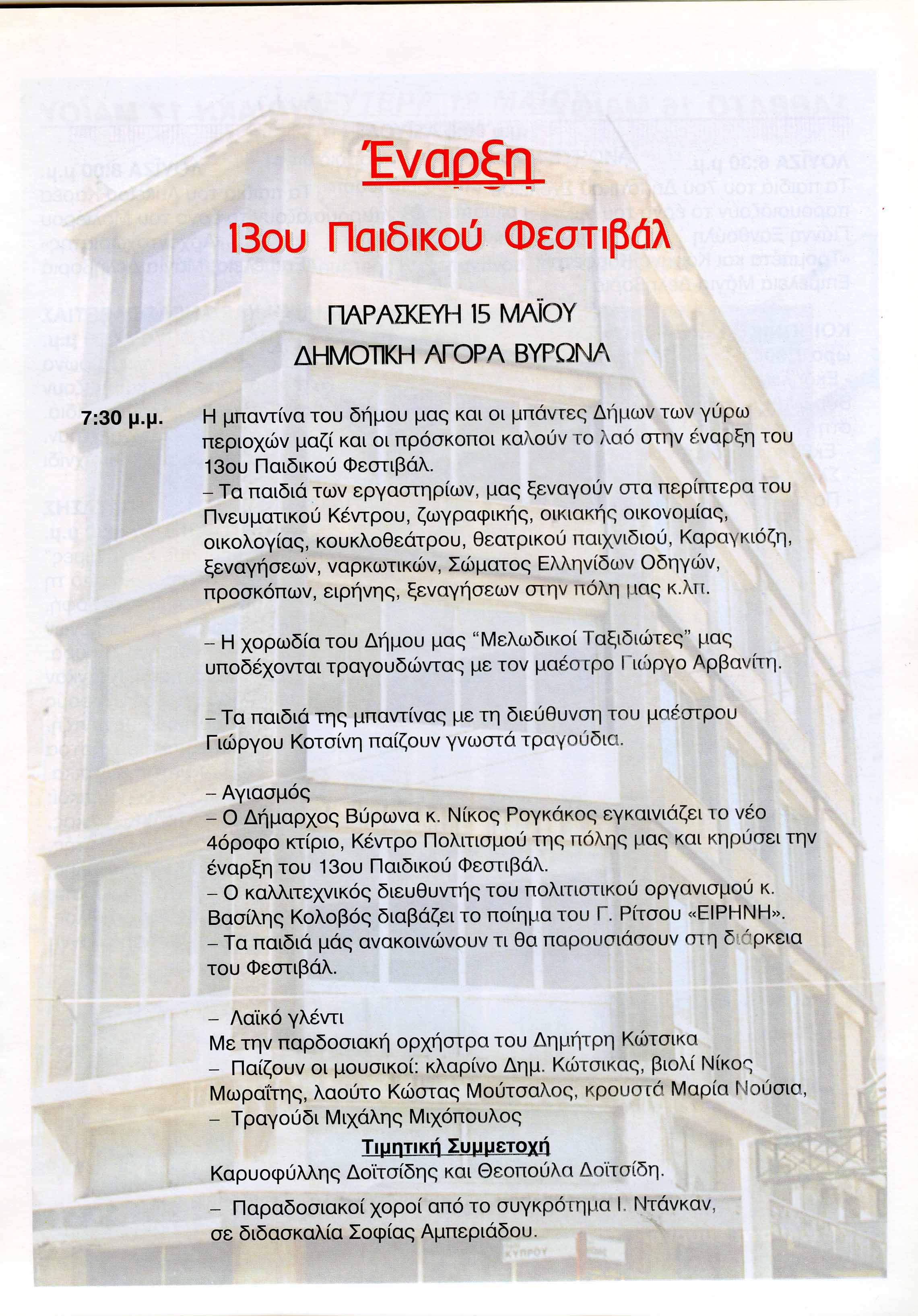 Πλαίσιο Εκδήλωσης: 13ο Παιδικό Φεστιβάλ