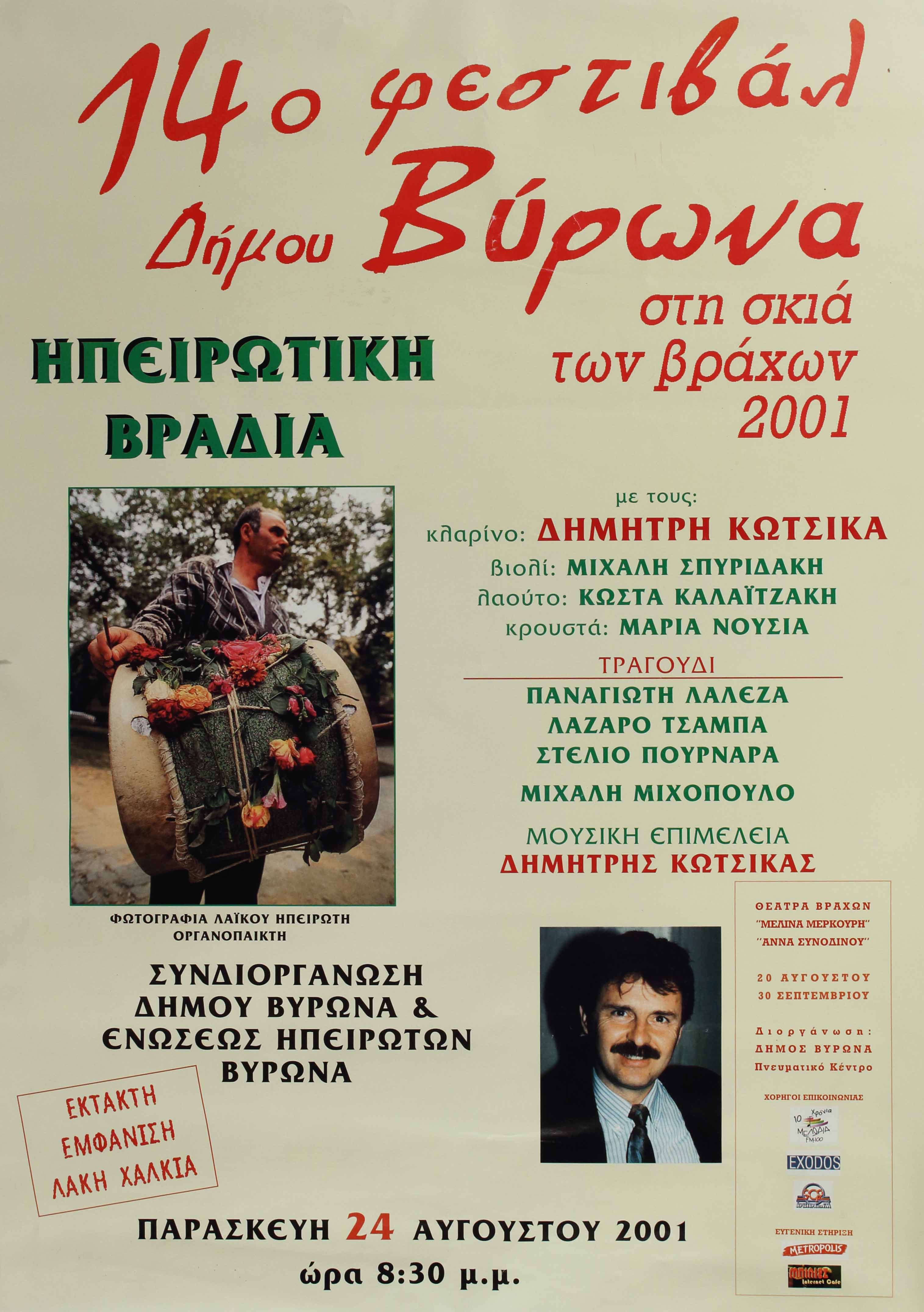 Πλαίσιο Εκδήλωσης: 14ο Φεστιβάλ Δήμου Βύρωνα 'Στη σκιά των βράχων', 2001