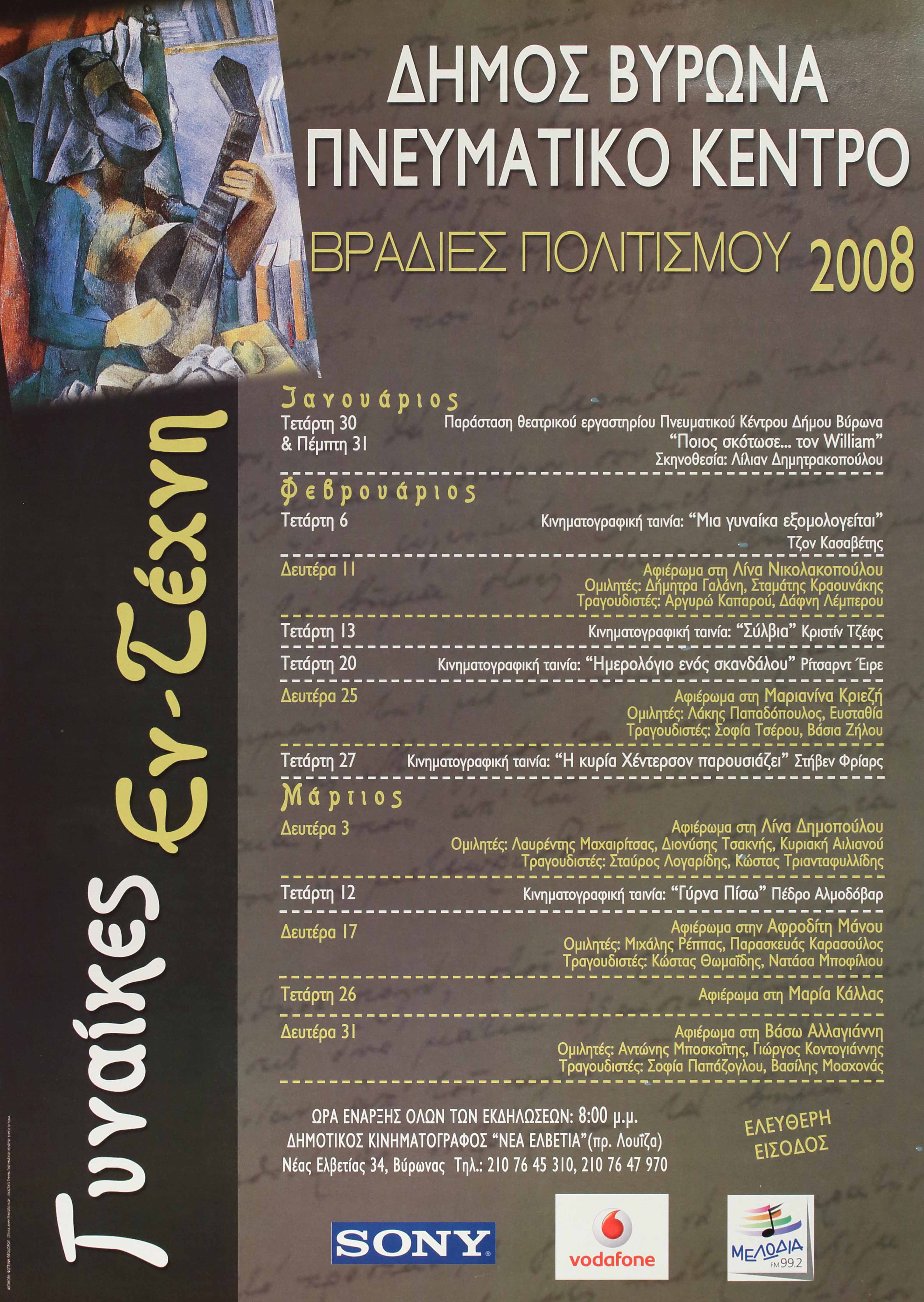Πλαίσιο Εκδήλωσης: Ποιητικές Βραδιές Δ' Κύκλος 2008. Αφιέρωμα:Γυναίκα εν τέχνη