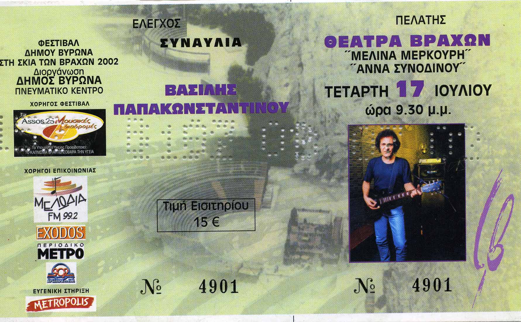 Πλαίσιο Εκδήλωσης: 15ο Φεστιβάλ Δήμου Βύρωνα “Στη σκιά των βράχων”, 2002