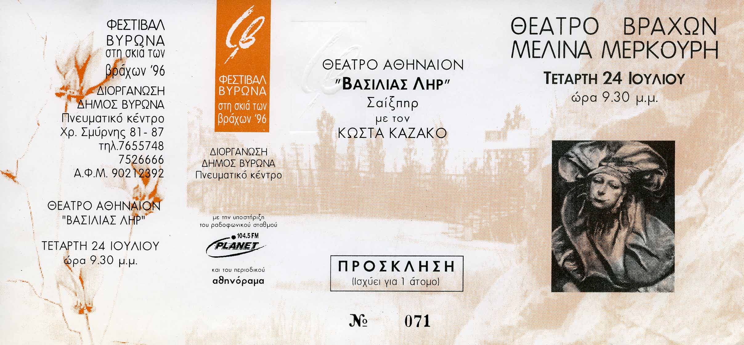 Πλαίσιο Εκδήλωσης: Φεστιβάλ Βύρωνα 'Στη σκιά των βράχων', 1996