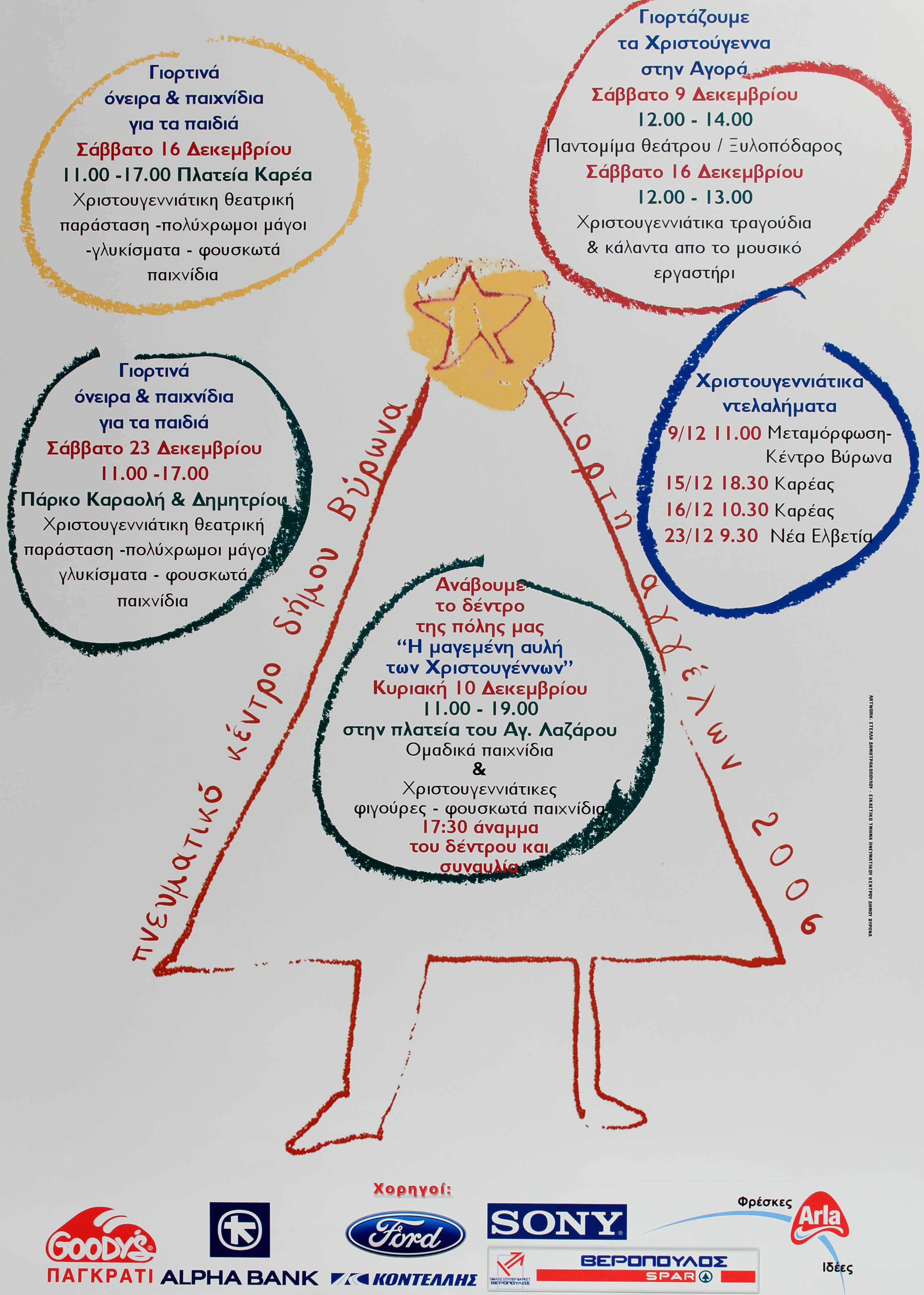 Σάββατο 9 Δεκεμβρίου: Γιορτάζουμε τα Χριστούγεννα στην Αγορά με παντομίμα θεάτρου / ξυλοπόδαρος, χριστουγεννιάτικα τραγούδια και κάλαντα από το Μουσικό Εργαστήρι. Κυριακή 10 Δεκεμβρίου ανάβουμε το δέντρο της πόλης μας στην Πλατεία Αγίου Λαζάρου. Σάββατο 16 και 23 Δεκεμβρίου και Γιορτινά όνειρα και παιχνίδια για τα παιδιά (πλατεία καρέα και πάρκο Καραολή και Δημητρίου.