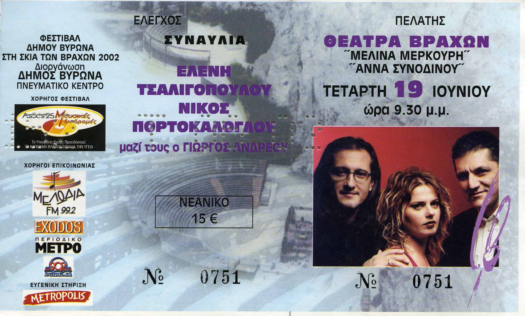 Πλαίσιο Εκδήλωσης: 15ο Φεστιβάλ Δήμου Βύρωνα “Στη σκιά των βράχων”, 2002