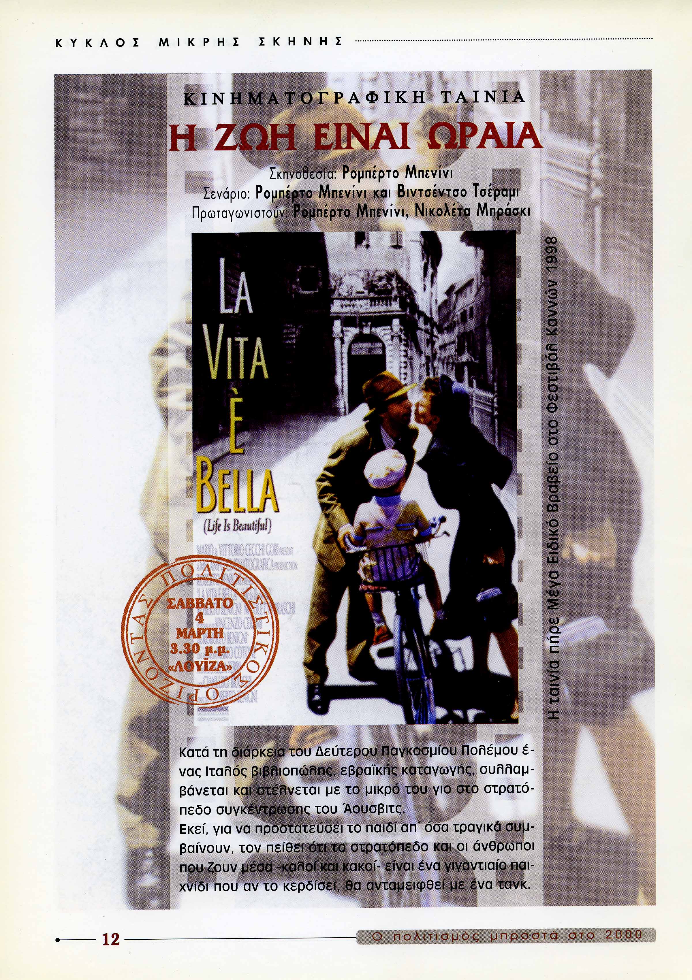 Πρωταγωνιστούν: Roberto Benigni, Nicoletta Braschi, Giorgio Cantarini
