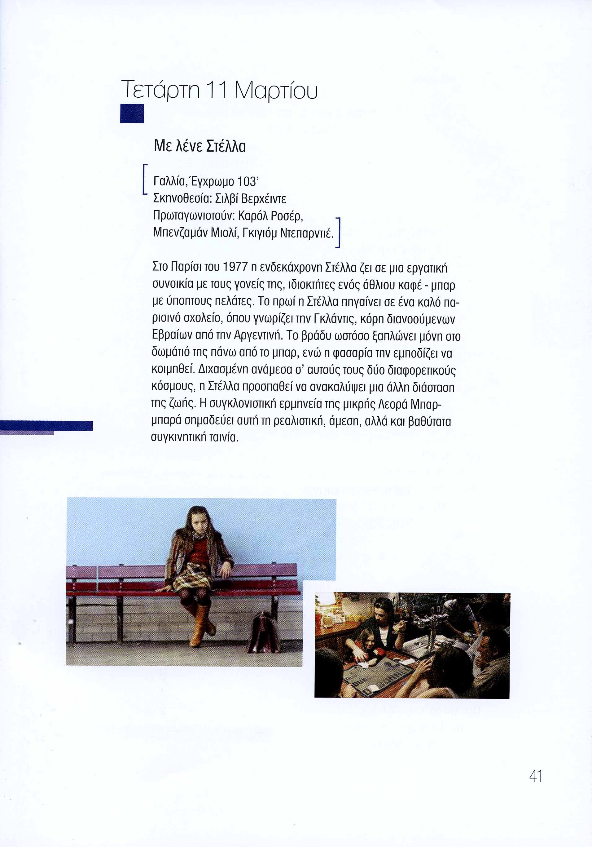 Στο Παρίσι του 1977 η ενδεκάχρονη Στέλλα ζει σε μια εργατική συνοικία με τους γονείς της, ιδιοκτήτες ενός άθλιου καφέ - μπαρ με ύποπτους πελάτες. Το πρωί η Στέλλα πηγαίνει σε ένα καλό παρισινό σχολείο, όπου γνωρίζει την Γκλάντις, κόρη διανοούμενων Εβραίων από την Αργεντινή. Το βράδυ ωστόσο ξαπλώνει μόνη στο δωμάτιό της πάνω από το μπαρ, ενώ η φασαρία την εμποδίζει να κοιμηθεί. Διχασμένη ανάμεσα σ’ αυτούς τους δύο διαφορετικούς κόσμους, η Στέλλα προσπαθεί να ανακαλύψει μια άλλη διάσταση της ζωής. Η συγκλονιστική ερμηνεία της μικρής Λεορά Μπαρμπαρά σημαδεύει αυτή τη ρεαλιστική, άμεση, αλλά και βαθύτατα συγκινητική ταινία.