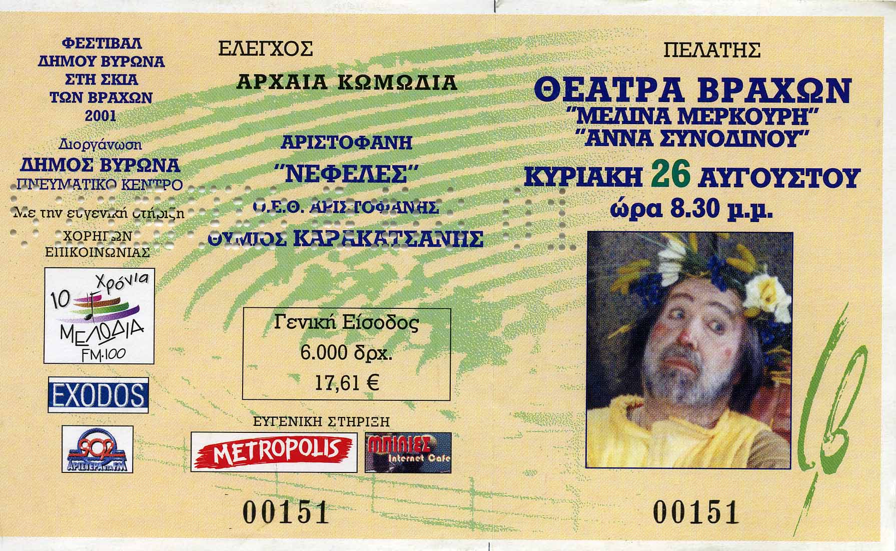 Πλαίσιο Εκδήλωσης: 14ο Φεστιβάλ Δήμου Βύρωνα 'Στη σκιά των βράχων', 2001