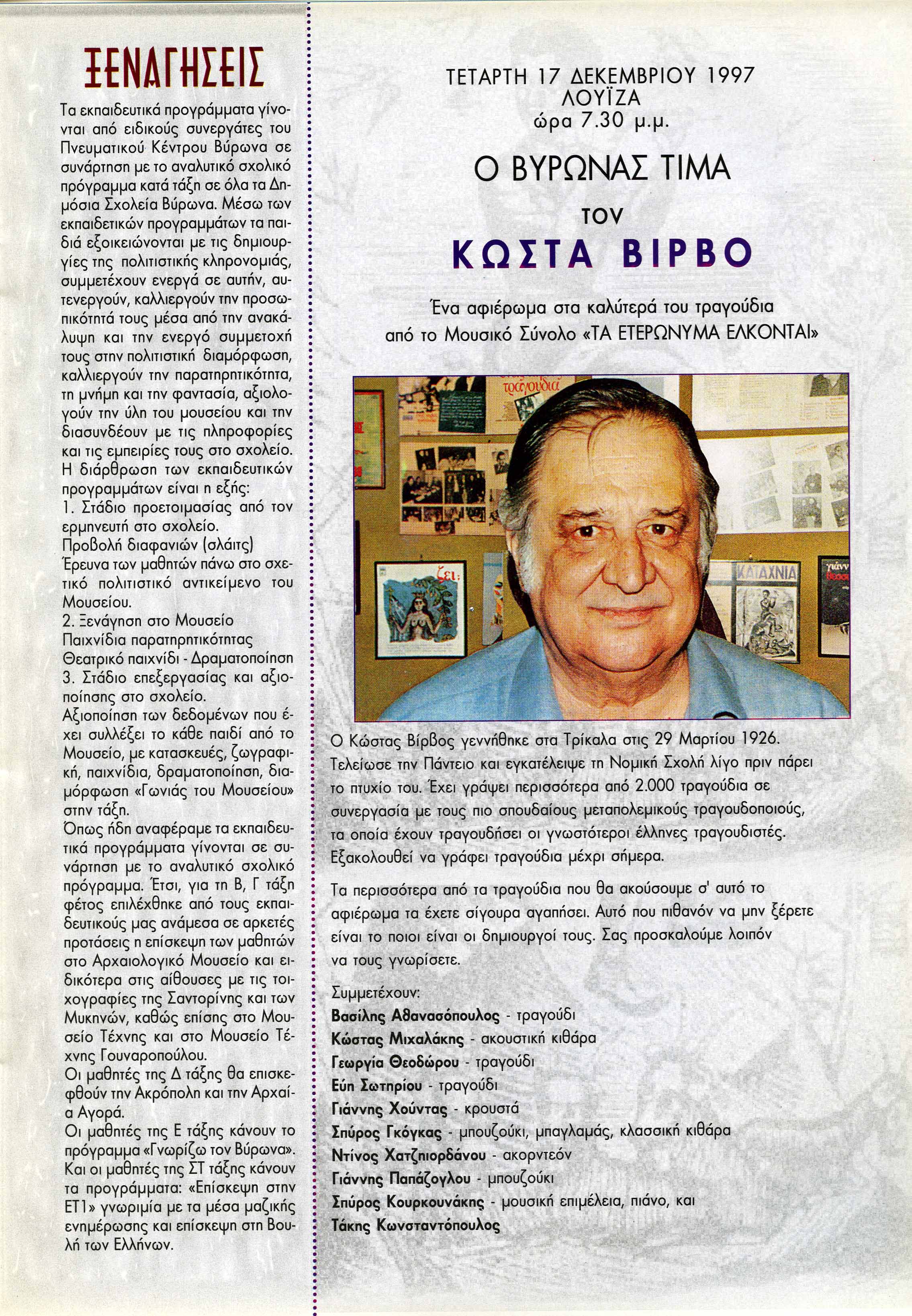 Πλαίσιο Εκδήλωσης: Πολιτιστικός ορίζοντας 1997 - 1998