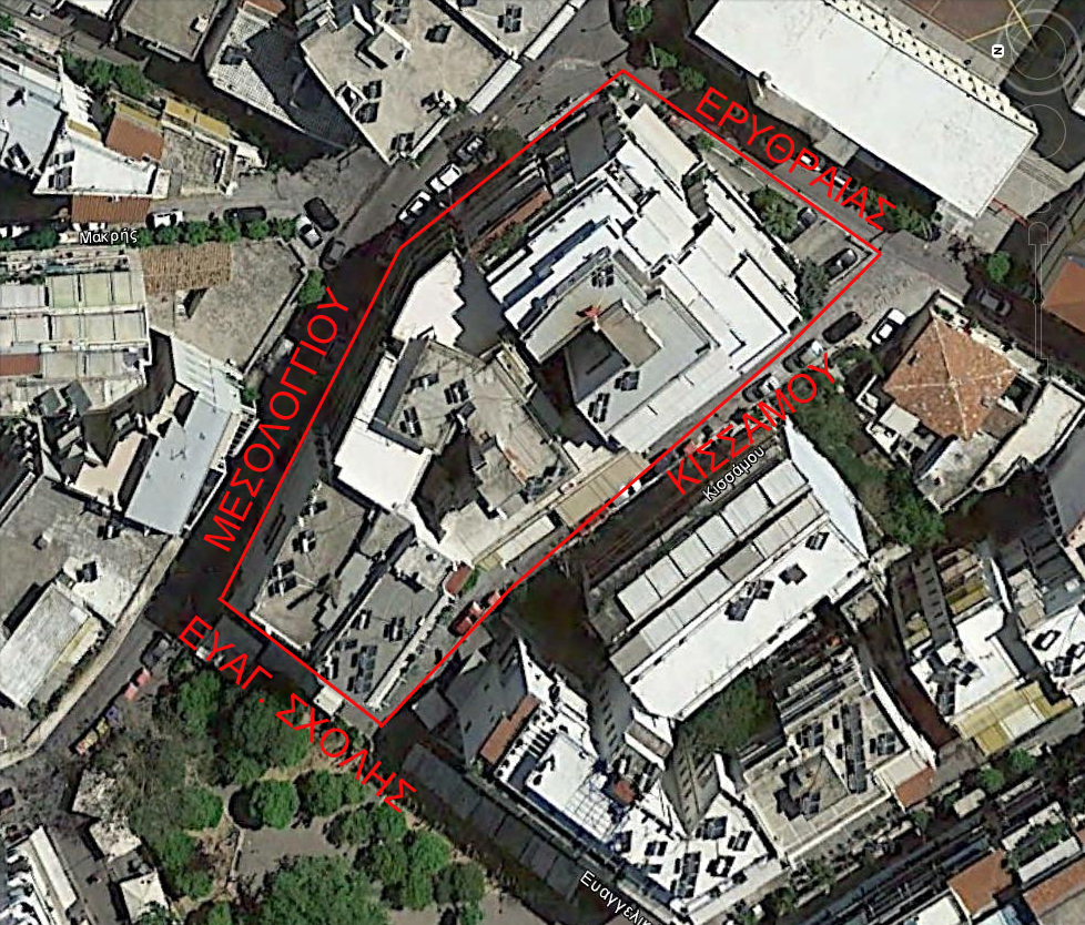 Οδοί: Ευαγγελικής Σχολής, Ερμού, Ερυθραίας, Δωρίδος