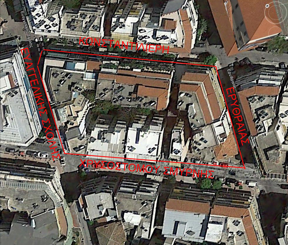 Οδοί: Λεωφ. Χρυσοστόμου Σμύρνης, Ερυθραίας, Δωδεκαννήσου, Ευαγγελικής Σχολής