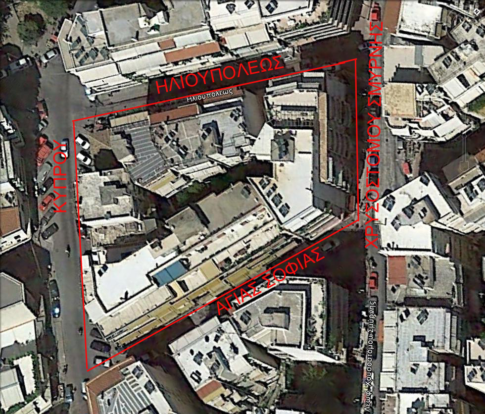 Οδοί: Μαινεμένης, Λεωφ. Χρυστοστόμου Σμύρνης, Ηλιουπόλεως, Λεωφ. Μαιάνδρου