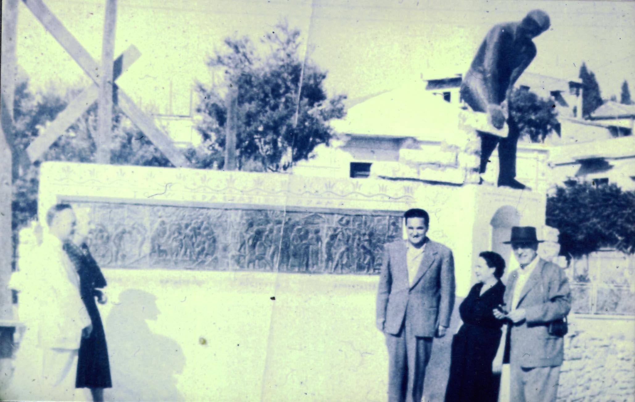 Πρόκειται για ένα μεγάλο σύμπλεγμα, που πήρε την ονομασία 'Μνημεία της δουλείας' και ήταν αφιερωμένο στον ανώνυμο Μικρασιάτη εργάτη, που με προσωπικό του μόχθο δημιουργεί τον πολιτισμό. Το σύμπλεγμα αποτελούν τρεις γλυπτές μπρούτζινες μορφές εργατών, του χτίστη, του σιδερά και του μαραγκού σε ώρα εργασίας καθώς και τέσσερις ανάγλυφες εντοιχισμένες επίσης μπρούτζινες παραστάσεις.Το σύμπλεγμα φιλοτεχνήθηκε το 1956 και ήταν έργο του γλύπτη Κώστα Κλουβάτου.