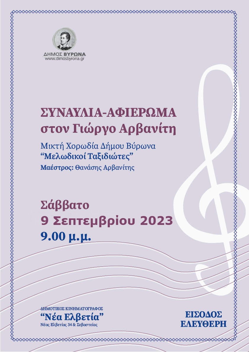 Συναυλία -αφιέρωμα στον Γιώργο Αρβανίτη από την μικτή χορωδία 'Μελωδικοί Ταξιδιώτες' του Δήμου Βύρωνα που διευθύνει ο μαέστρος Θανάσης Αρβανίτης
