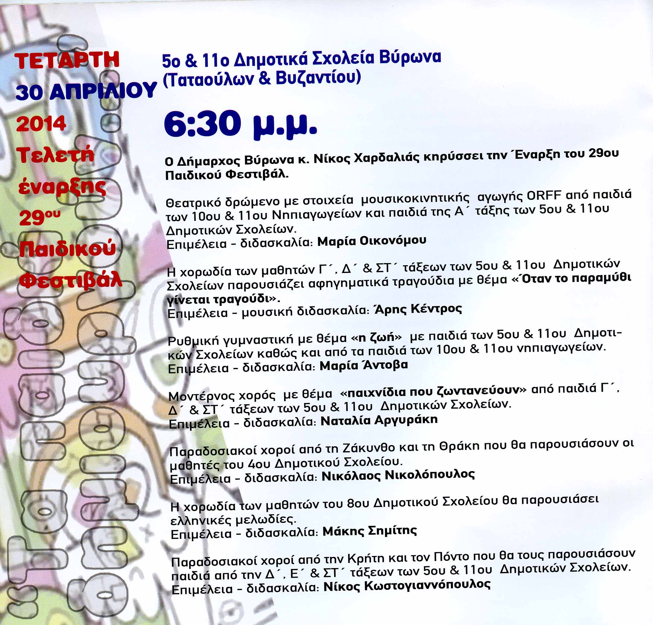 Πλαίσιο Εκδήλωσης: 29ο Παιδικό Φεστιβάλ