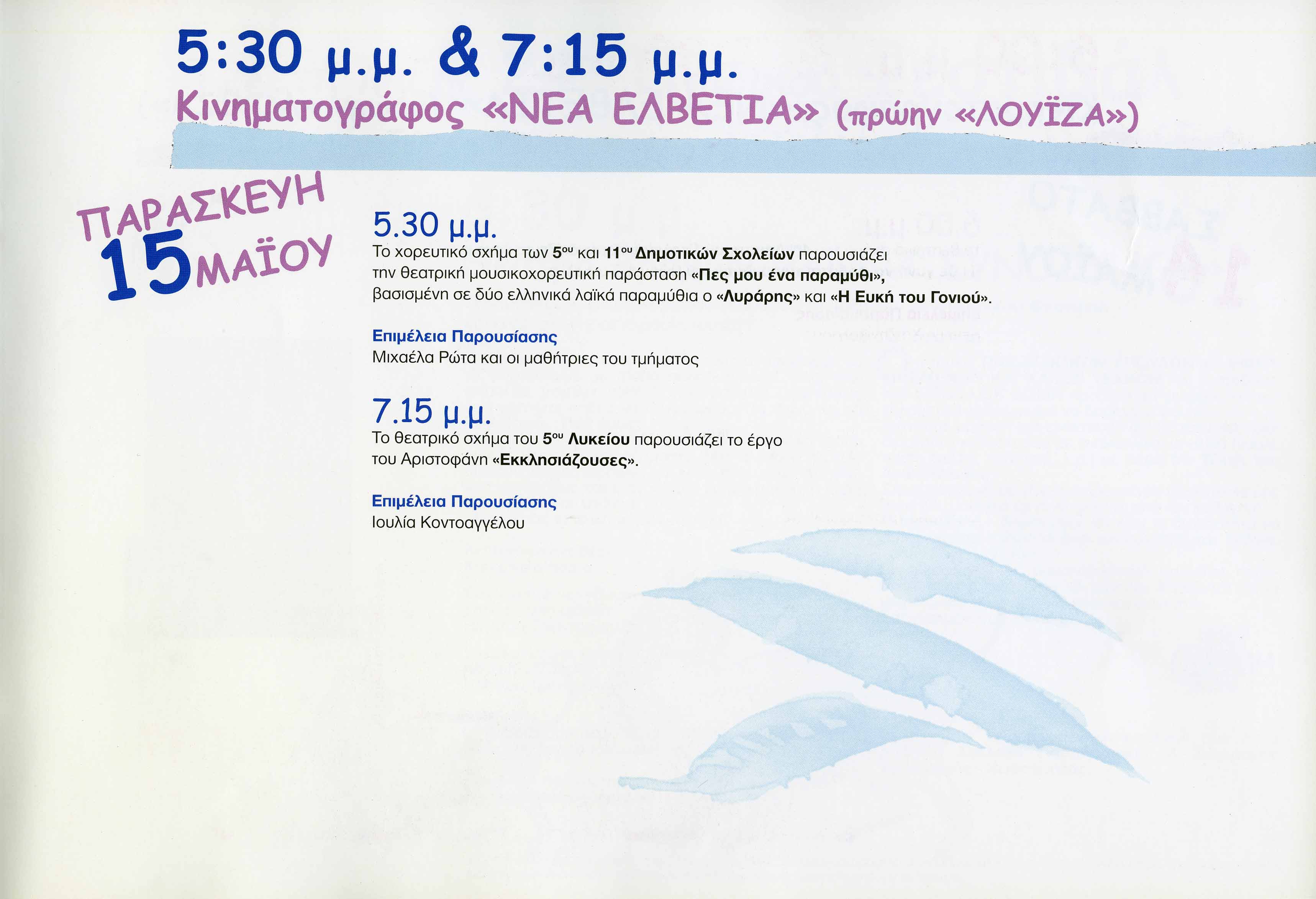 Χώρος Διεξαγωγής: Κινηματογράφος “Νέα Ελβετία”