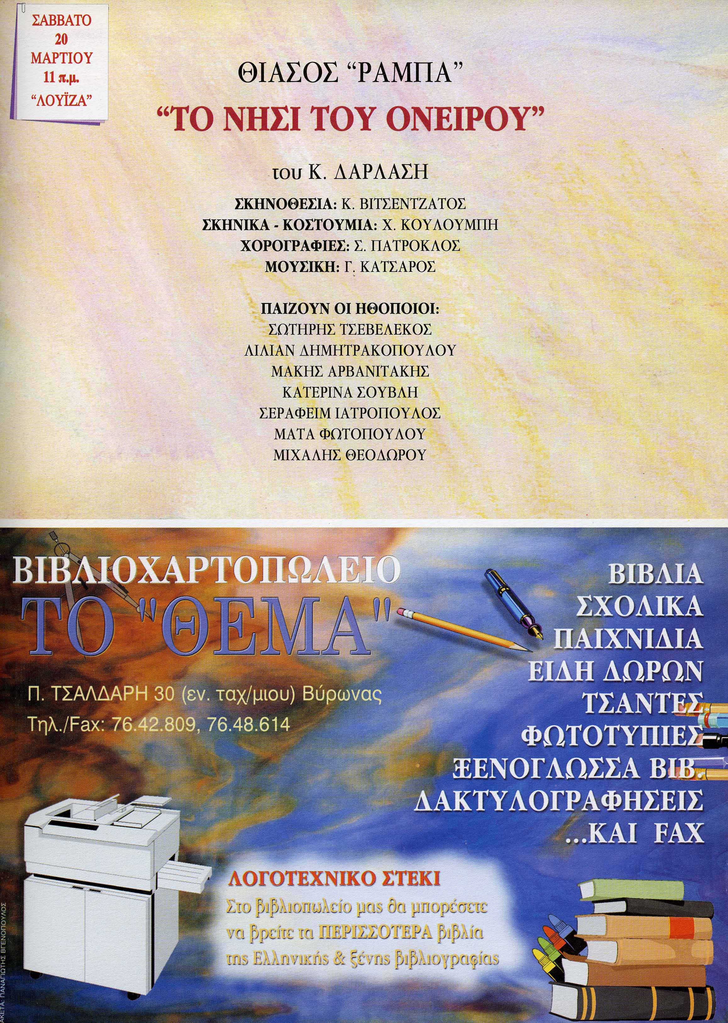 Πλαίσιο Εκδήλωσης: Μικρή σκηνή 1999