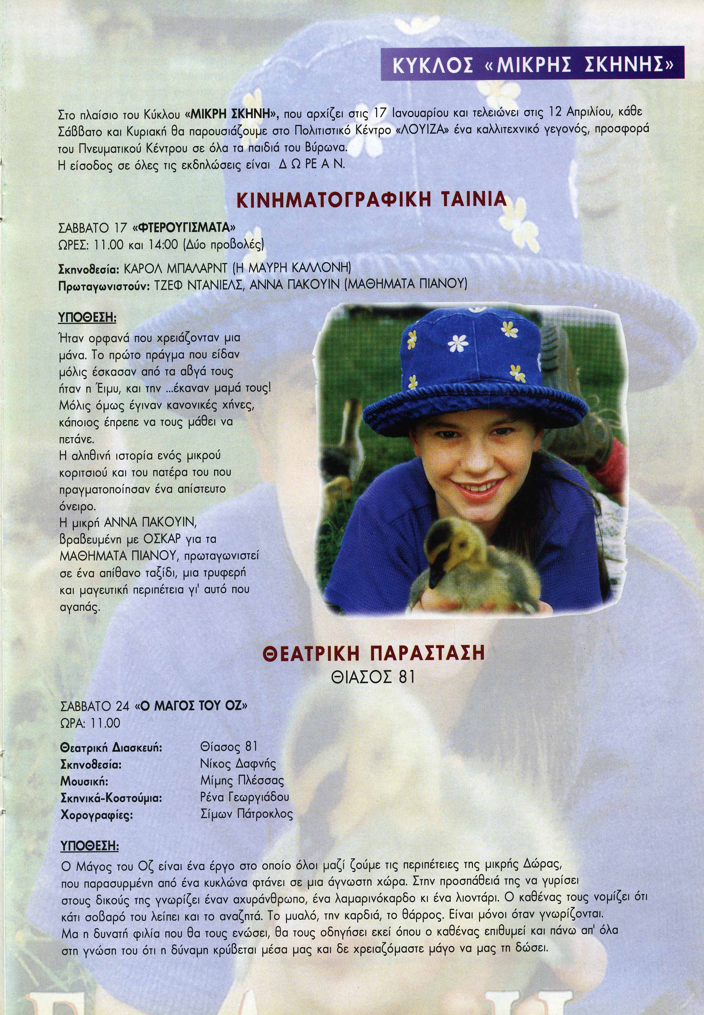 Πλαίσιο Εκδήλωσης: Μικρή σκηνή 1998