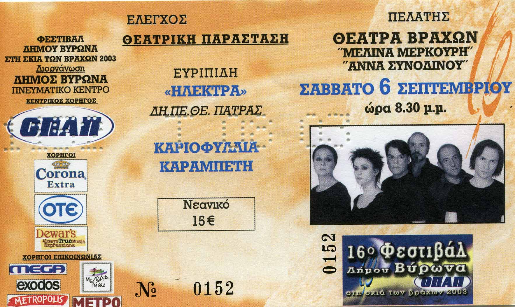 Πλαίσιο Εκδήλωσης: 16ο Φεστιβάλ Δήμου Βύρωνα “Στη σκιά των βράχων”, 2003