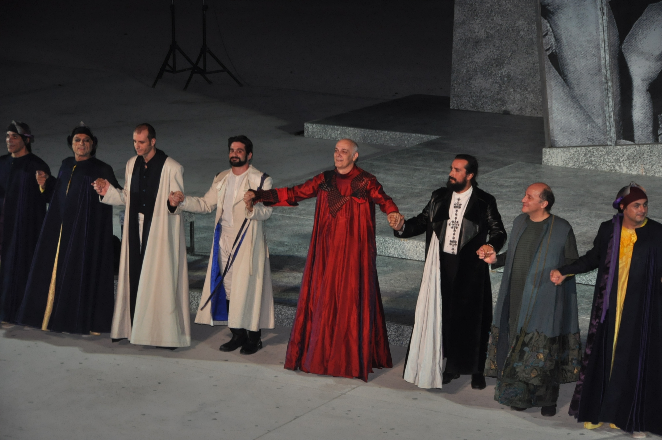 Κορυφαίοι- Χορός: Τάσος Αλατζάς, Νίκος Αναστασόπουλος, Κωνσταντίνος Γιαννακόπουλος, Χάρης Γρηγορόπουλος, Δημήτρης Καραβιώτης, Σταύρος Καραγιάννης, Δημήτρης Καραμπέτσης, Δημήτρης Μόσχος, Δημήτρης Μυλωνάς, Δημήτρης Παπανικολάου, Παντελής Φλατσούσης, Γεράσιμος Σκαφίδας