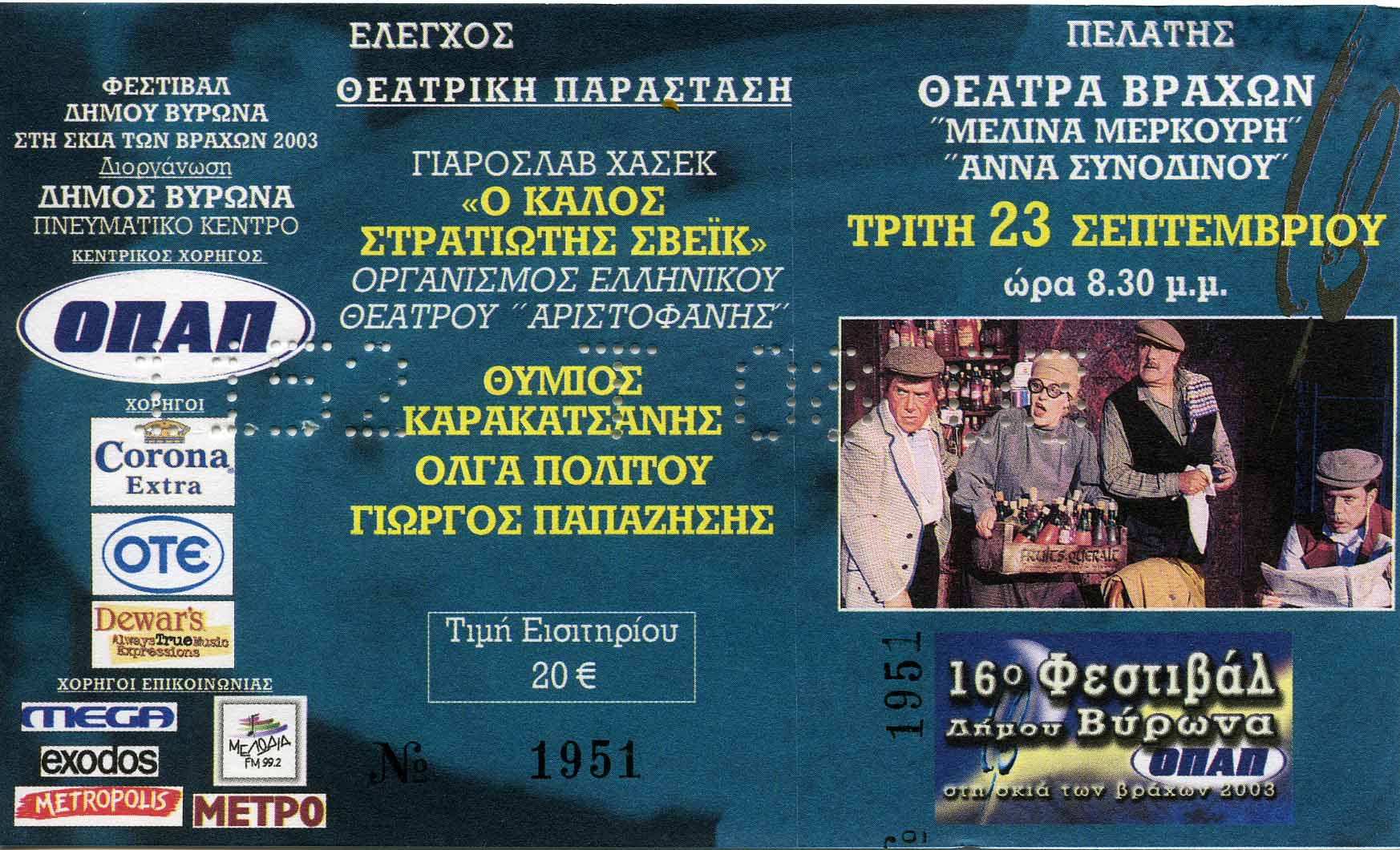 Πλαίσιο Εκδήλωσης: 16ο Φεστιβάλ Δήμου Βύρωνα “Στη σκιά των βράχων”, 2003