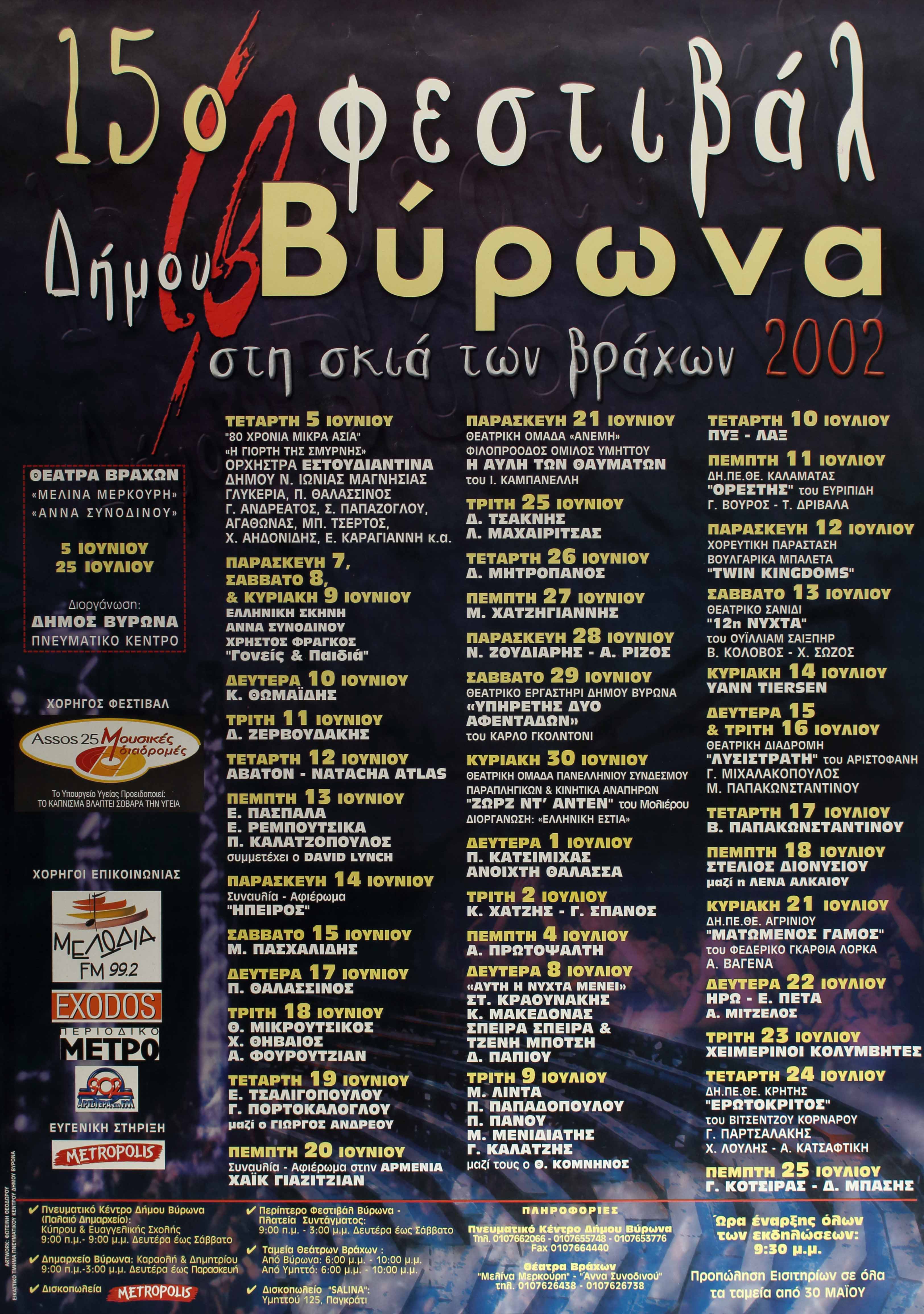 Συνέντευξη τύπου για την παρουσίαση του προγράμματος του 15ου Φεστιβάλ Δήμου Βύρωνα 'Στη σκιά των βράχων', 2002