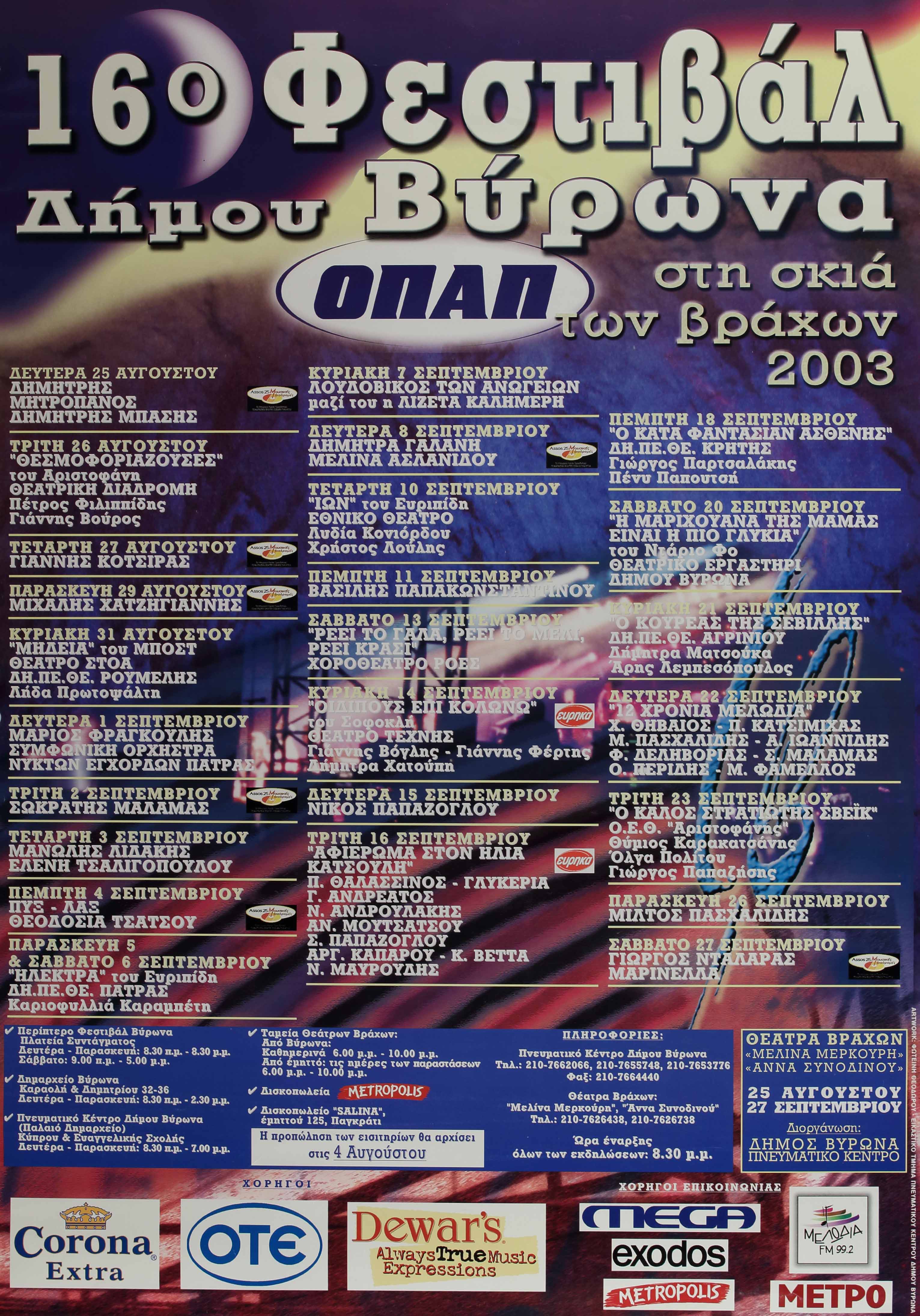 Συνέντευξη τύπου για την παρουσίαση του προγράμματος του 16ου Φεστιβάλ Δήμου Βύρωνα 'Στη σκιά των βράχων', 2003