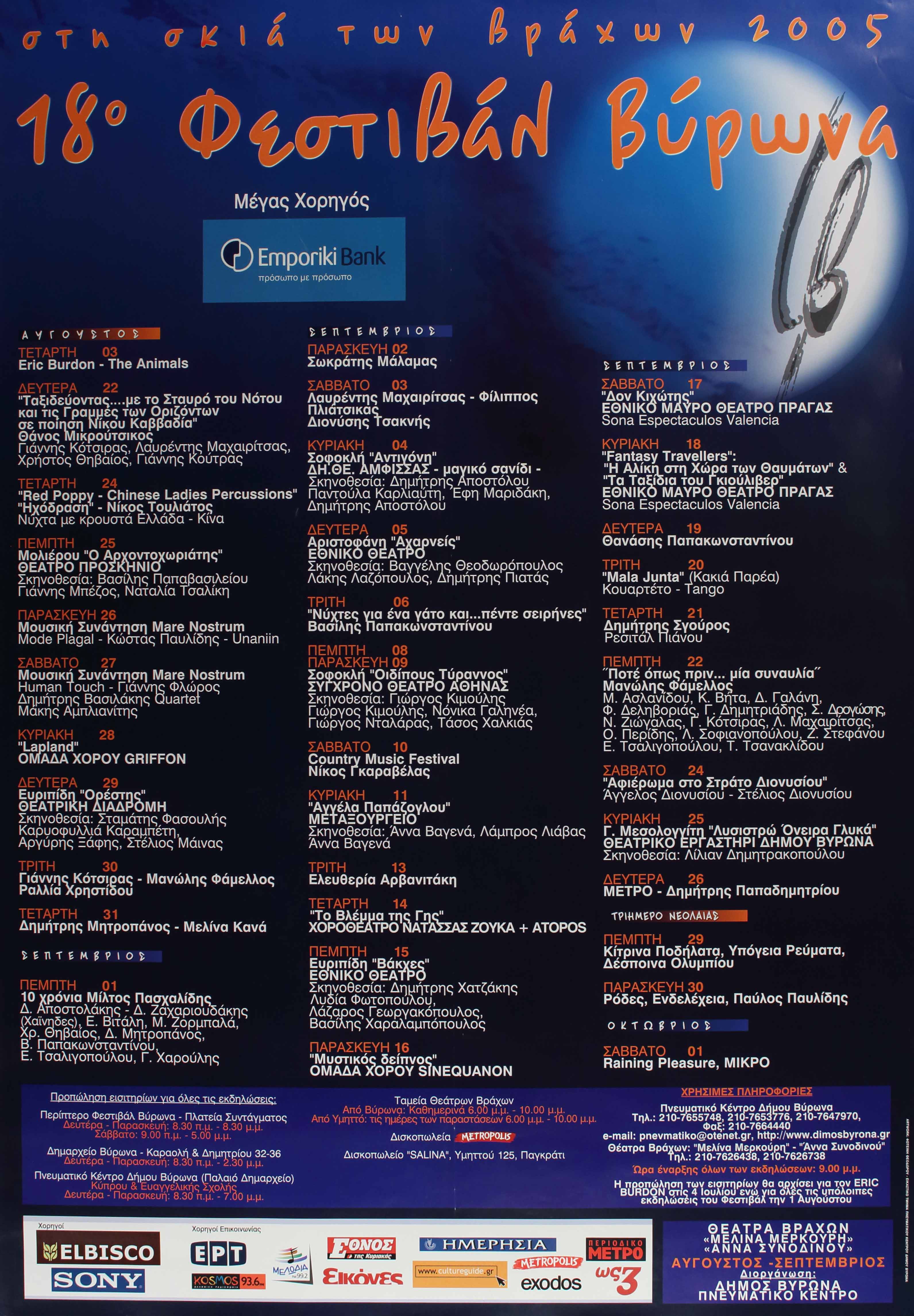 Συνέντευξη τύπου για την παρουσίαση του προγράμματος του 18ου Φεστιβάλ Δήμου Βύρωνα 'Στη σκιά των βράχων', 2005
