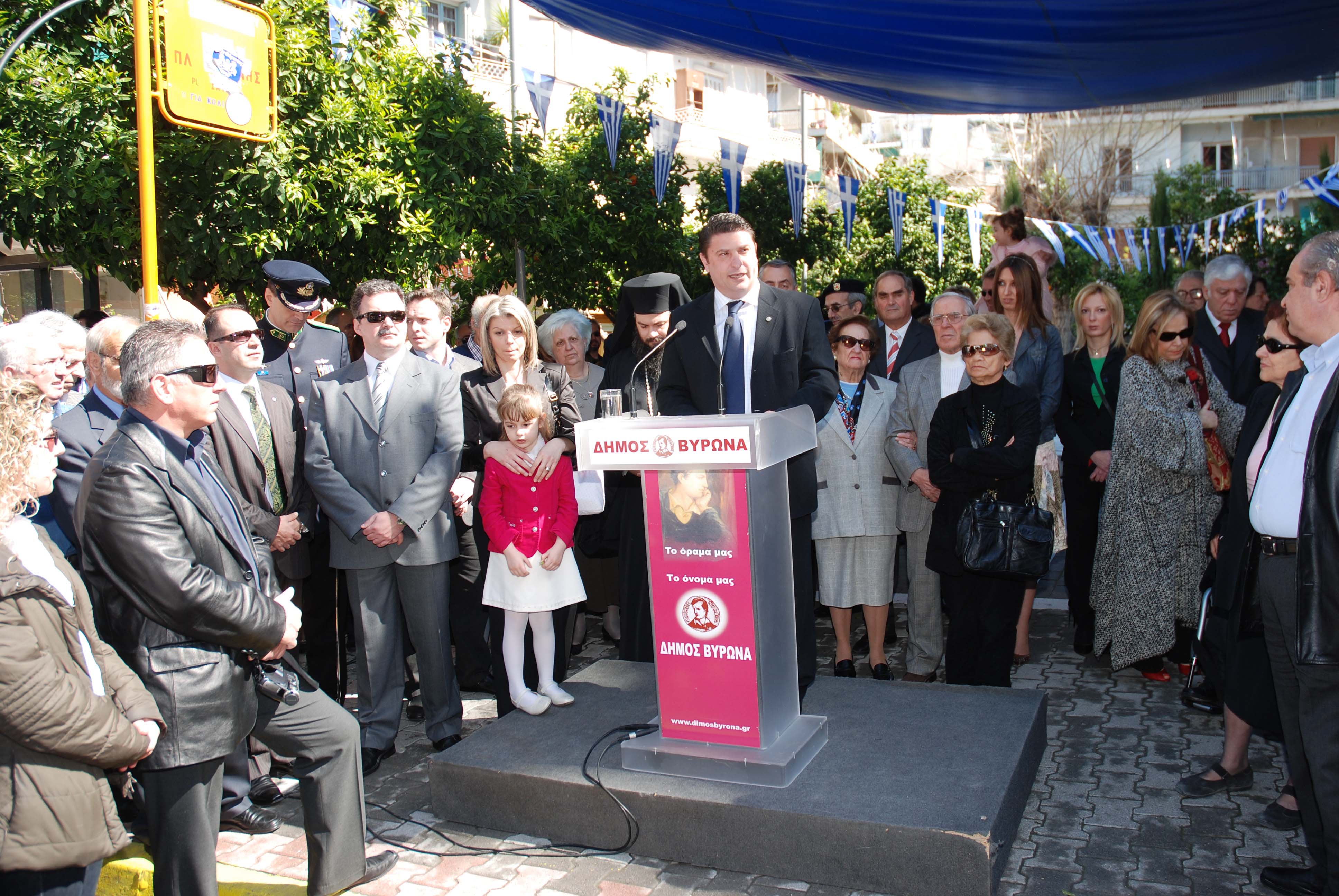 Πρόγραμμα: Γενικός Σημαιοστολισμός όλων των Δημοσίων, Δημοτικών, Ιδιωτικών καταστημάτων, Τραπεζών και σπιτιών από της 8ης πρωινής της 23ης μέχρι και τη δύση του ηλίου της 25η Μαρτίου και γενική φωταγώγηση τις βραδινές ώρες της 24ης και της 25ης Μαρτίου.Ομιλίες σε ειδικές συγκεντρώσεις στα σχολεία, Δημόσιες Υπηρεσίες και Οργανισμούς Δημοσίου Δικαίου, κ.λ.π. Προσκύνημα των μαθητών των σχολείων, Προσκόπων, Οδηγών στο Μνημείο Ηρώων, με επικεφαλής Καθηγητές, Δασκάλους και βαθμοφόρους. Κωδωνοκρουσίες στους Ιερούς Ναούς. Έπαρση σημαίας με τιμητικό απόσπασμα Προσκόπων . Δοξολογία στον Καθεδρικό Ναό Αγ. Τριάδος Βύρωνα. Συγκέντρωση των μελών του Δημοτικού Συμβουλίου, των Αρχών, Σωματείων, Οργανώσεων και παράταξη των αντιπροσωπειών των μαθητών των Σχολείων Μέσης και Δημοτικής Εκπαίδευσης, των Προσκόπων, Οδηγών, κ.λ.π. στο Μνημείο Εθνικής Αντίστασης, (πλατεία Χρυσοστόμου Σμύρνης.) Επιμνημόσυνη δέηση στο Μνημείο της Εθνικής Αντίστασης (Πλατεία Χρ. Σμύρνης) 'Αιώνια η Μνήμη' Κατάθεση στεφάνων Τήρηση ενός λεπτού σιγής 'Εθνικός Ύμνος' Εκφώνηση του πανηγυρικού της ημέρας από τον Δήμαρχο κ. Νίκο Χαρδαλιά. Παρέλαση μπροστά στο λαό και τις αρχές με τη συνοδεία της Μπάντας των Προσκόπων της Τοπικής Εφορείας Βύρωνα - Καισαριανής. Η πορεία της παρέλασης θα ακολουθήσει τους δρόμους: Κωνσταντιλιέρη, Ερυθραίας και Χρυσοστόμου Σμύρνης. Υποστολή της σημαίας με τιμητικό απόσπασμα Ελληνίδων Οδηγών και Προσκόπων Βύρωνα.