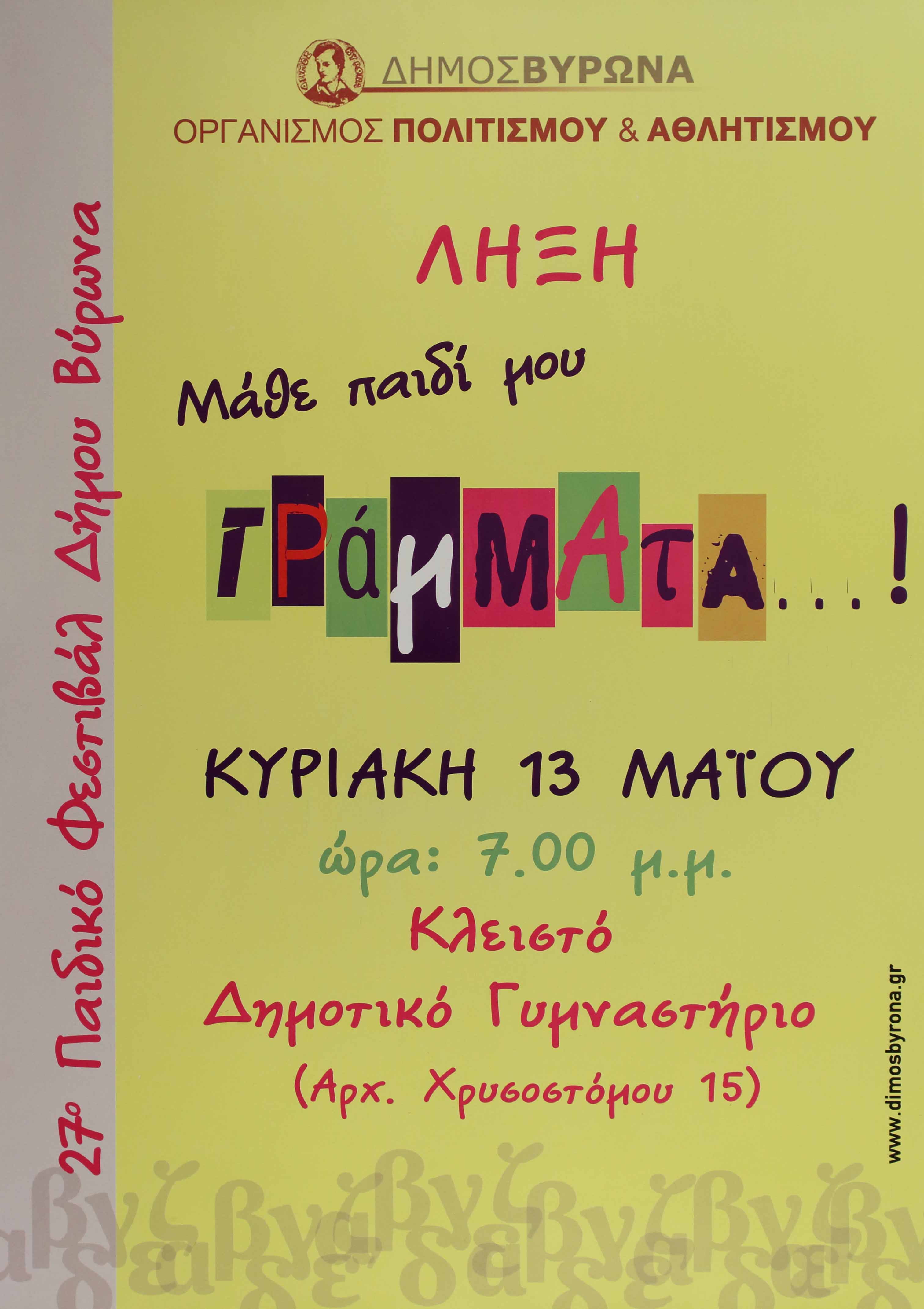 Διοργανωτής: Οργανισμός Πολιτισμού και Αθλητισμού του Δήμου Βύρωνα