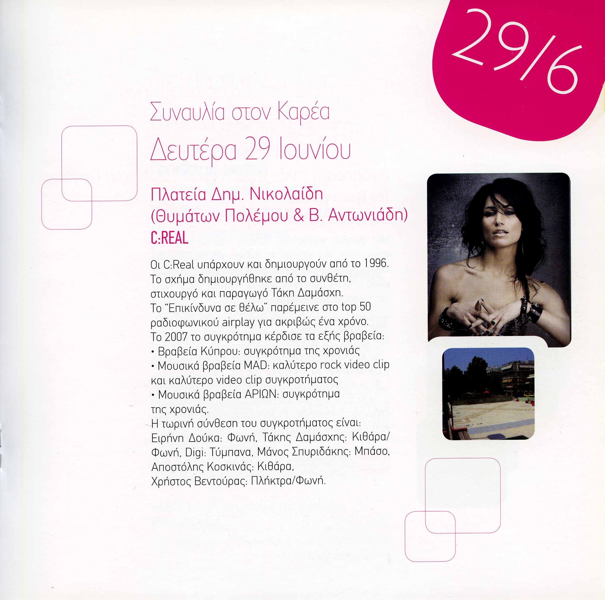 Οι C:ReaI υπάρχουν και δημιουργούν από το 1996. Το σχήμα δημιουργήθηκε από το συνθέτη, στιχουργό και παραγωγό Τάκη Δαμάσχη. Το Επικίνδυνα σε θέλω' παρέμεινε στο top 50 ραδιοφωνικού airplay για ακριβώς ένα χρόνο. Το 2007 το συγκρότημα κέρδισε τα εξής βραβεία: Βραβεία Κύπρου: συγκρότημα της χρονιάς Μουσικά βραβεία MAD: καλύτερο rock video clip και καλύτερο video clip συγκροτήματος. Μουσικά βραβεία ΑΡΙΩΝ: συγκρότημα της χρονιάς.