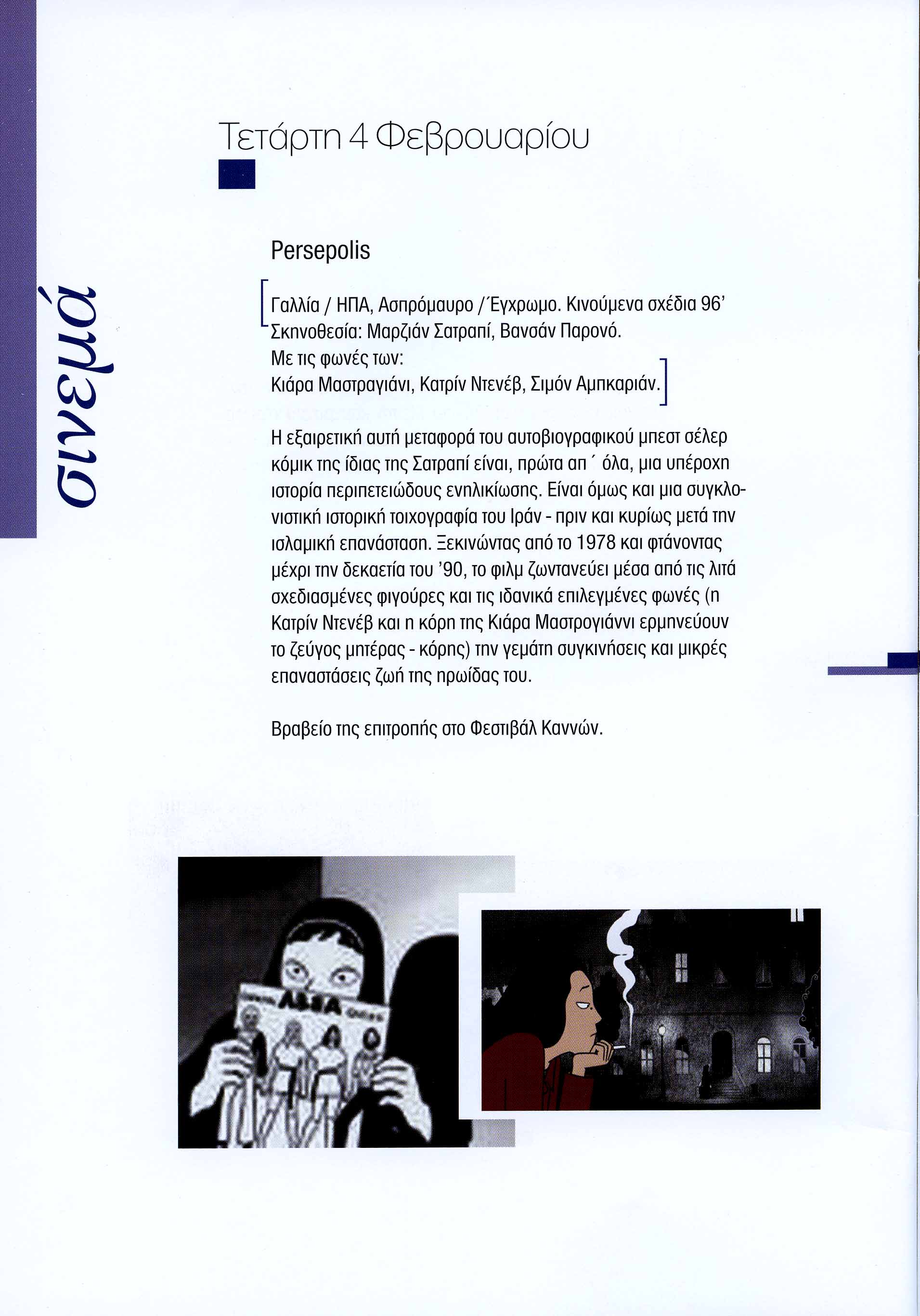 Η εξαιρετική αυτή μεταφορά του αυτοβιογραφικού μπεστ σέλερ κόμικτης ίδιας της Σατραπί είναι, πρώτα απ' όλα, μια υπέροχη ιστορία περιπετειώδους ενηλικίωσης. Είναι όμως και μια συγκλονιστική ιστορική τοιχογραφία του Ιράν - πριν και κυρίως μετά την ισλαμική επανάσταση. Ξεκινώντας από το 1978 και φτάνοντας μέχρι την δεκαετία του ’90, το φιλμ ζωντανεύει μέσα από τις λιτά σχεδιασμένες φιγούρες και τις ιδανικά επιλεγμένες φωνές (η Κατρίν Ντενέβ και η κόρη της Κιάρα Μαστρογιάννι ερμηνεύουν το ζεύγος μητέρας - κόρης) την γεμάτη συγκινήσεις και μικρές επαναστάσεις ζωή της ηρωίδας του.