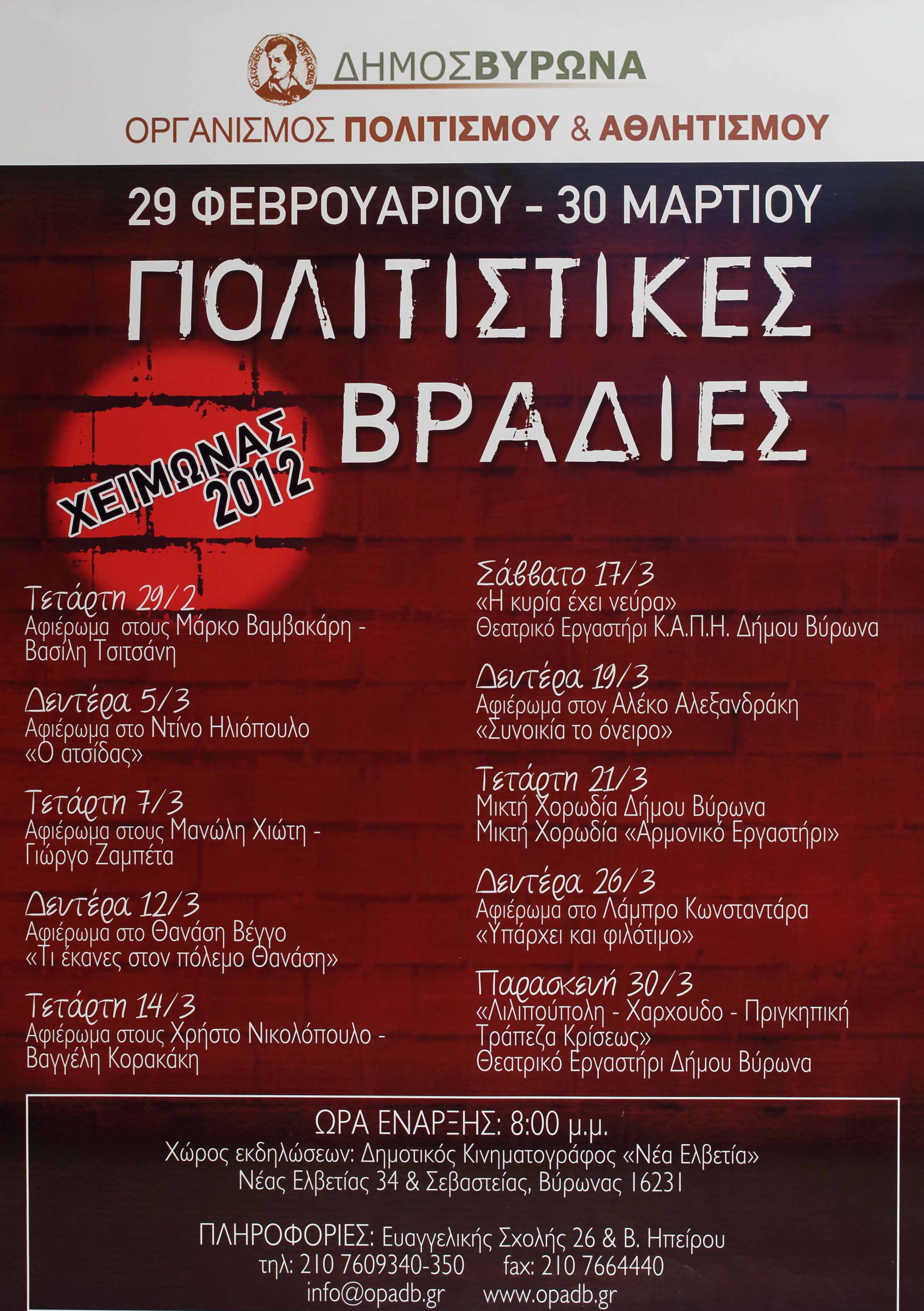 Διοργανωτής: Οργανισμός Πολιτισμού και Αθλητισμού του Δήμου Βύρωνα