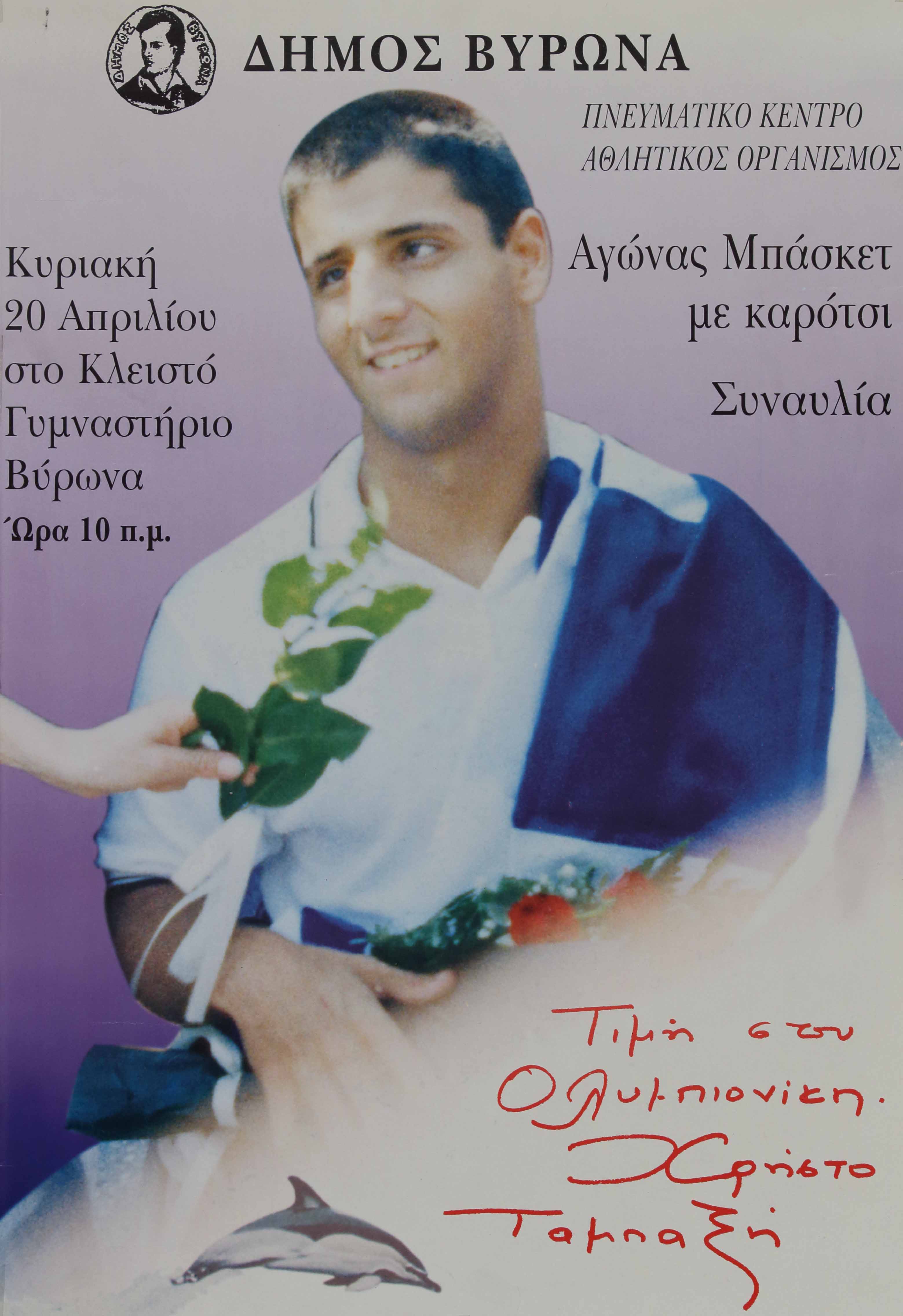 Το Πνευματικό Κέντρο και ο Αθλητικός Οργανισμός του Δήμου Βύρωνα σας καλούν στην εκδήλωση που διοργανώνουν για να τιμήσουν τον Βυρωνιώτη Ολυμπιονίκη Χρήστο Ταμπαξή